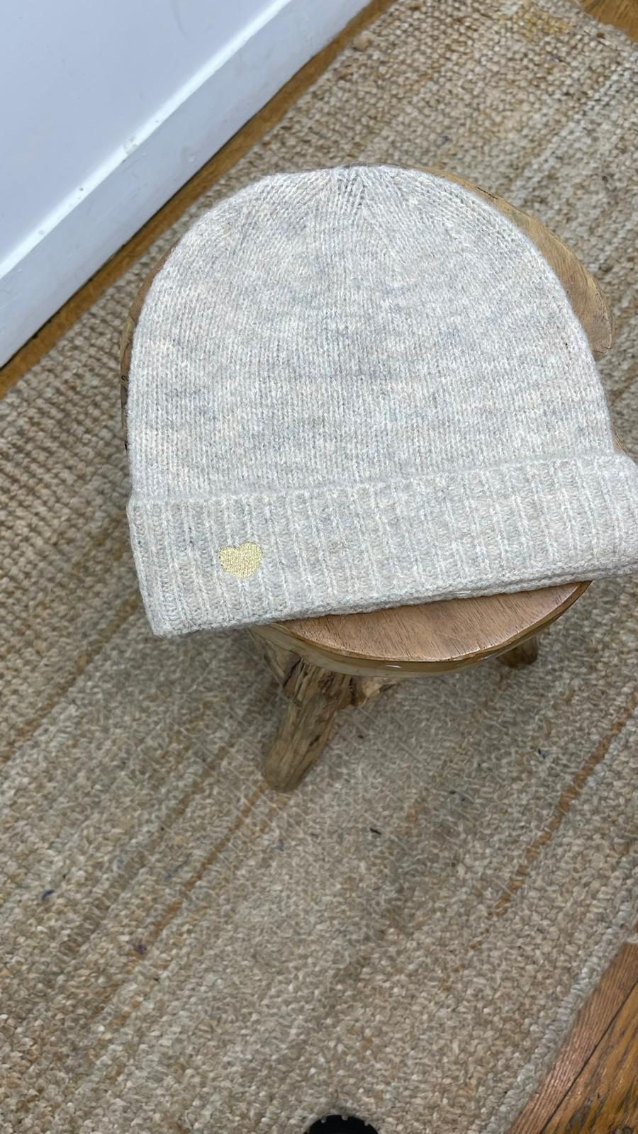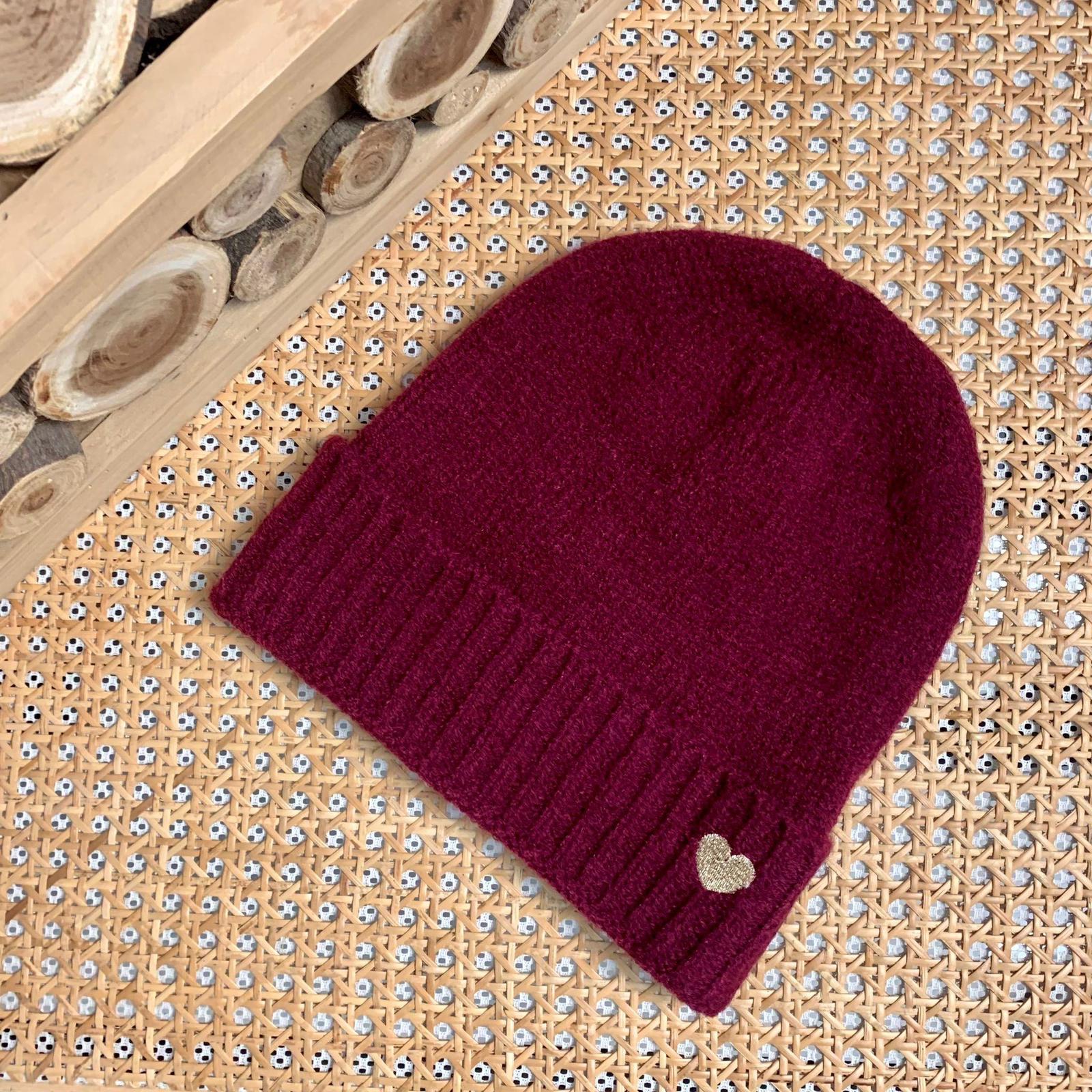 Ce bonnet cœur brodé allie confort et style avec sa matière douce et chaude, idéale pour l’hiver.