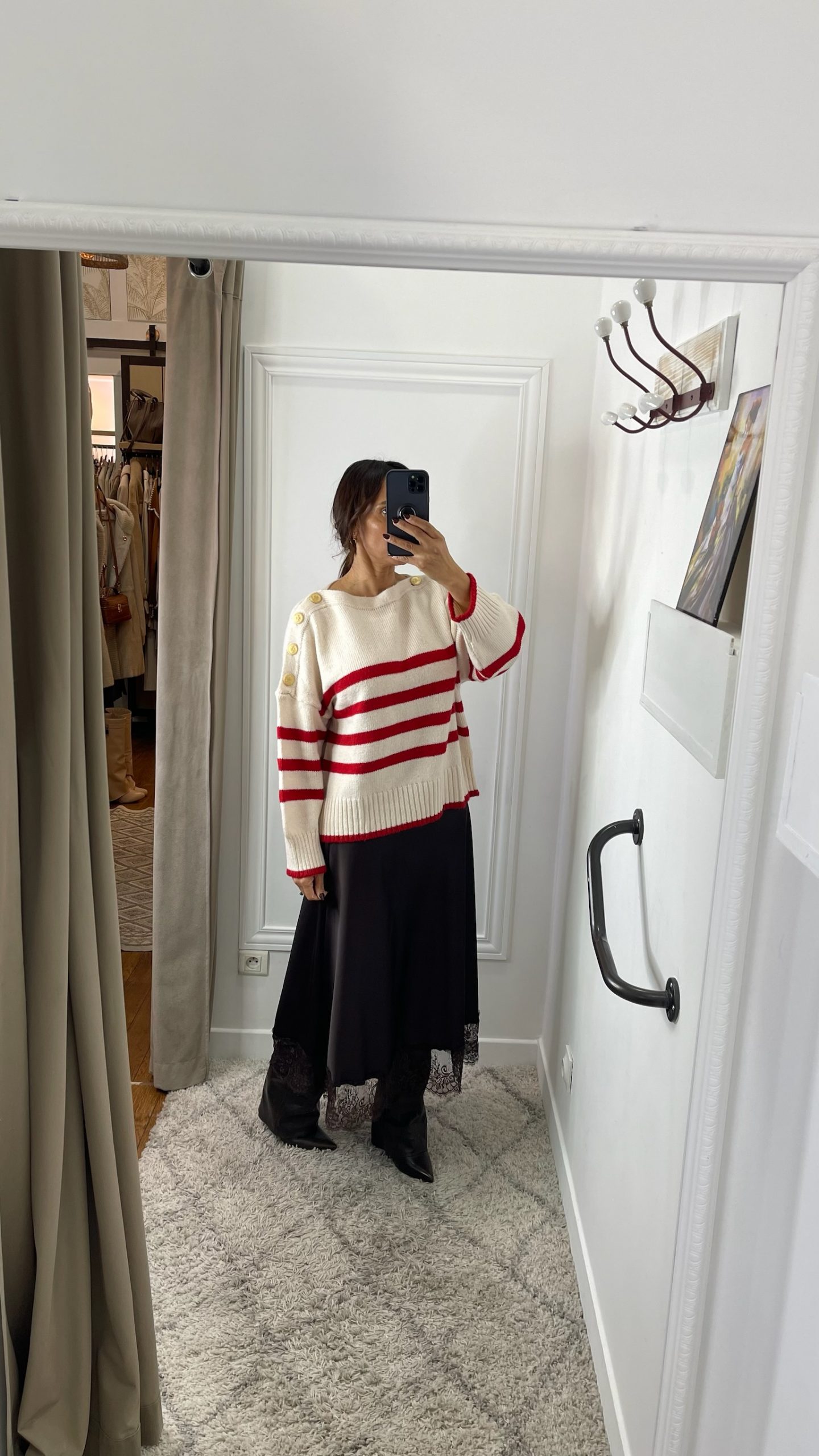 Pull en laine, rayures rougesPull en laine, rayures rouges